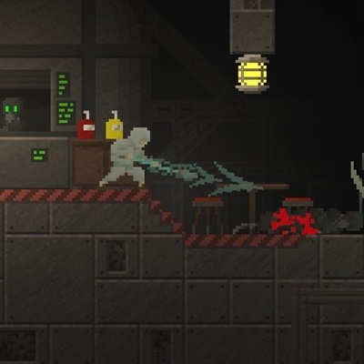 A swift ninja armed with a deadly spear use a grappling hook, slow down time and rewind time in this intense, action-adventure plateformer.